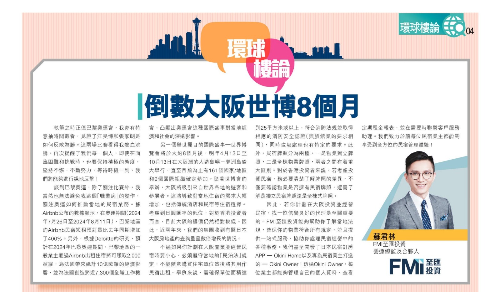 蘇君林專欄《星島睇樓王》「環球樓論」 —倒數大阪世博8個月