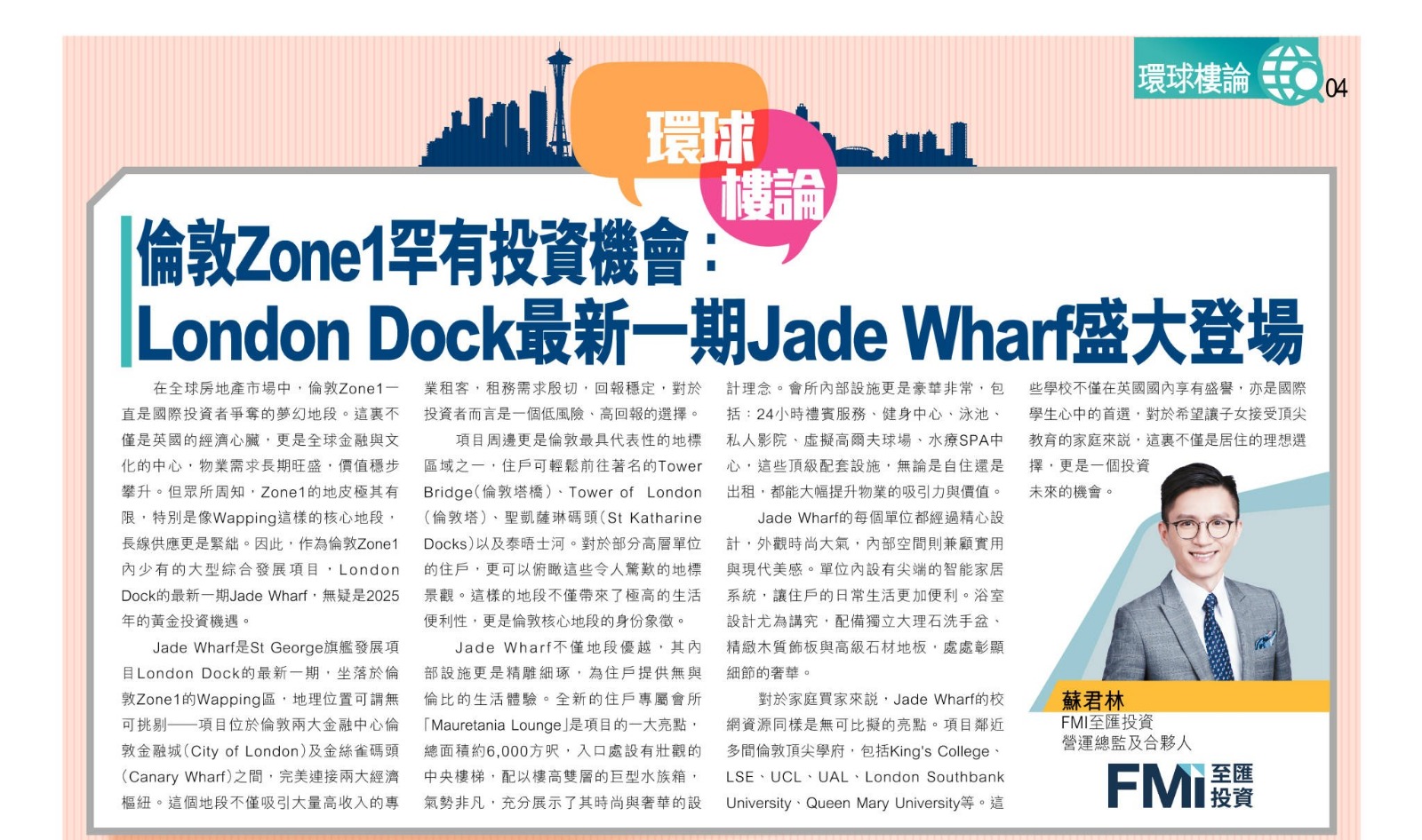 在全球房地產市場中,倫敦Zone 1 一直是國際投資者爭奪的夢幻地段。這裡不僅是英國的經濟心臟,更是全球金融與文化的中心,物業需求長期旺盛,價值穩步攀升。但眾所周知,Zone 1 的地皮極其有限,特別是像 Wapping 這樣的核心地段,長線供應更是緊絀。因此,作為倫敦Zone 1內少有的大型綜合發展項目,London Dock 的最新一期 Jade Wharf,無疑是2025年的黃金投資機遇。
