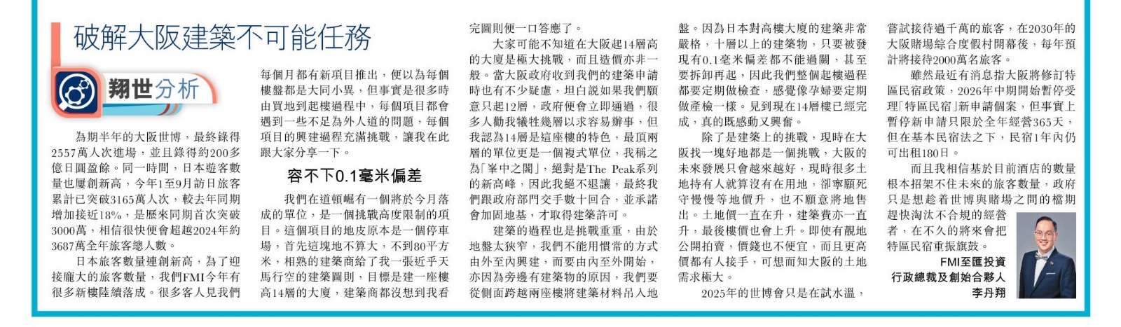 為期半年的大阪世博,最終錄得2,557萬人次進場,並且錄得約二百多億日圓盈餘。同一時間,日本遊客數量也屢創新高,今年一至九月訪日旅客累計已突破3,165萬人次,較去年同期增加接近百分之十八,是歷來同期首次突破3,000萬,相信很快便會超越2024年約3,687萬全年旅客總人數。