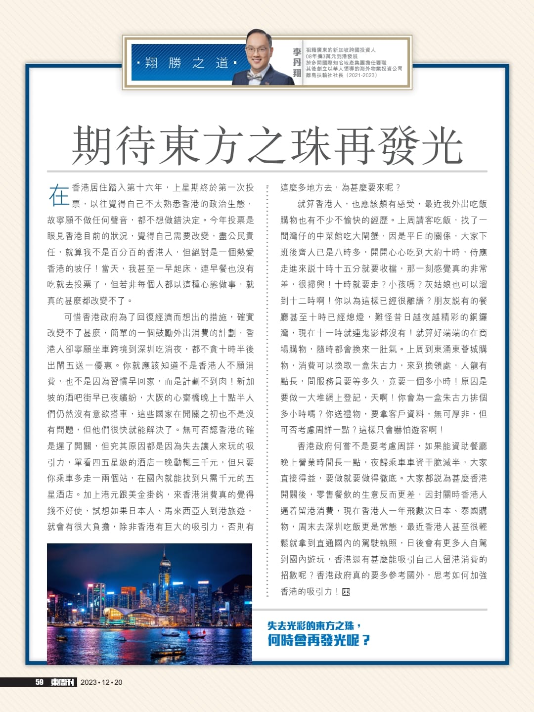 香港政府何嘗不是要考慮周詳,如果能資助餐廳晚上營業時間長一點,夜歸乘車車資干脆減半,大家直接得益,要做就要做得徹底。大家都說為甚麼香港開關後,零售餐飲的生意反而更差,因封關時香港人逼著留港消費,現在香港人一年飛數次日本、泰國購物,周末去深圳吃飯更是常態,最近香港人甚至很輕鬆就拿到直通國內的駕駛執照,日後會有更多人自駕到國內遊玩,香港還有甚麼能吸引自己人留港消費的招數呢?香港政府真的要多參考國外,思考如何加強香港的吸引力!