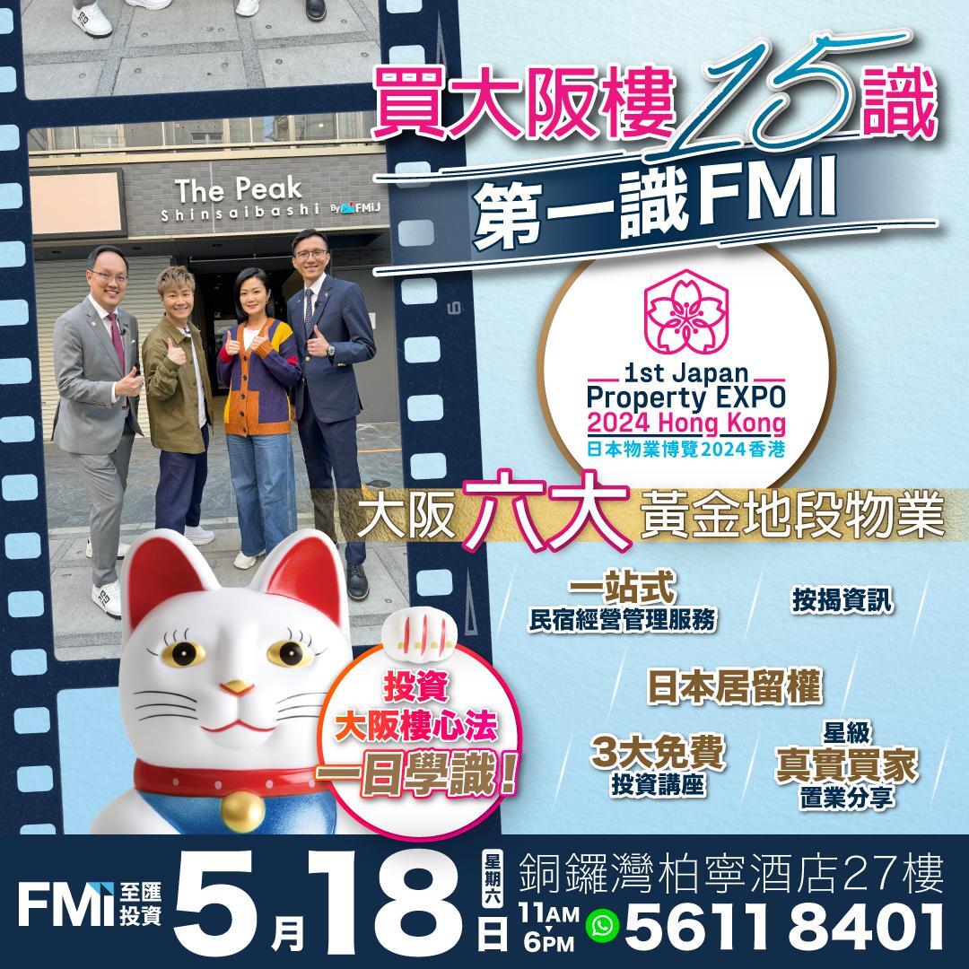 這個星期六,FMI首個在香港的日本物業博覽,將會在銅鑼灣柏寧酒店舉行,我們的大阪及東京團隊包括開發、建築、按揭、民宿管理及經營簽證各部門主管,將到香港跟大家見面,而新加坡、北京以及上海分公司的負責人亦會齊集,一次過展示我們的實力!