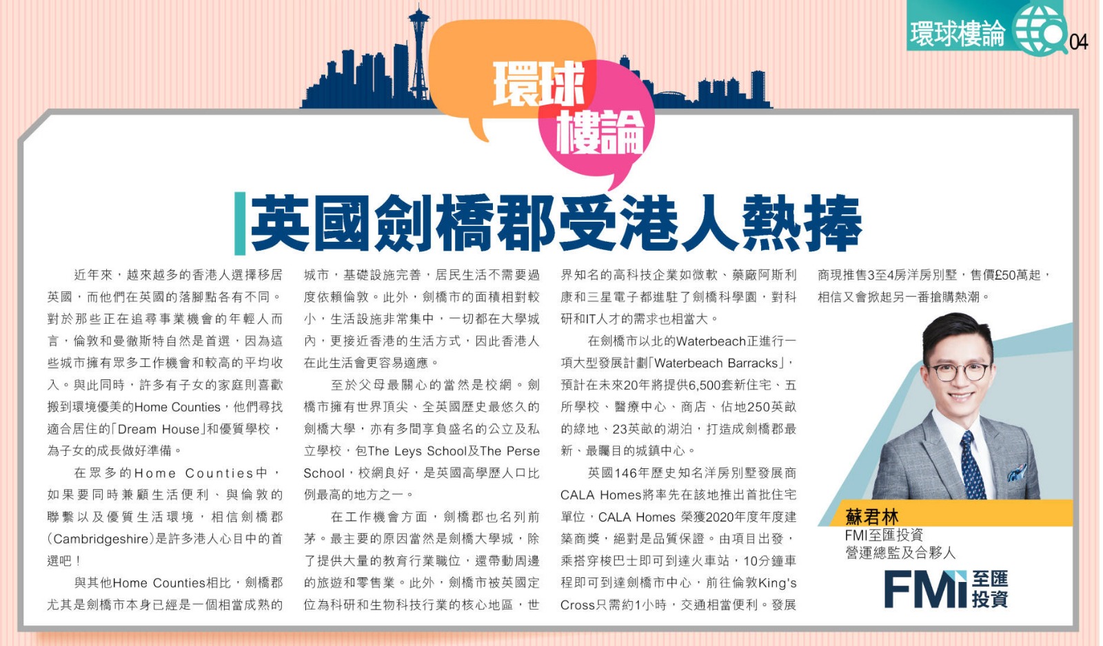 在眾多的Home Counties中,如果要同時兼顧生活便利、與倫敦的聯繫以及優質生活環境,相信劍橋郡(Cambridgeshire)是許多港人心目中的首選吧!