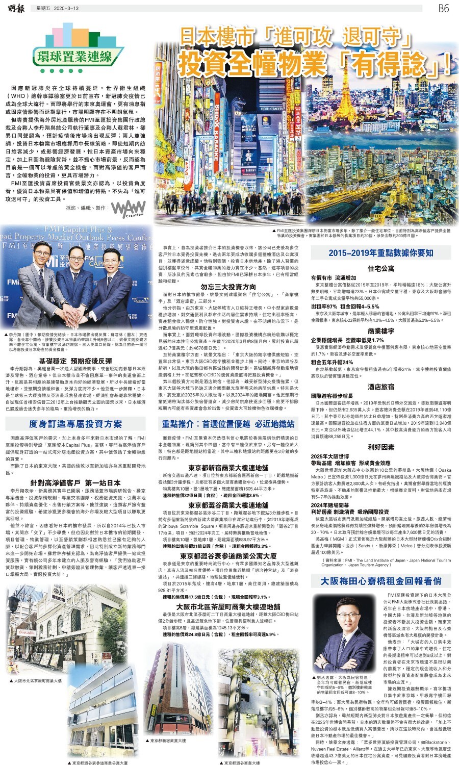 FMI至匯投資首席投資官姚景文亦認為,以投資角度看,優質日本物業具有保值和增值的特點,不失為「進可攻退可守」的投資工具。