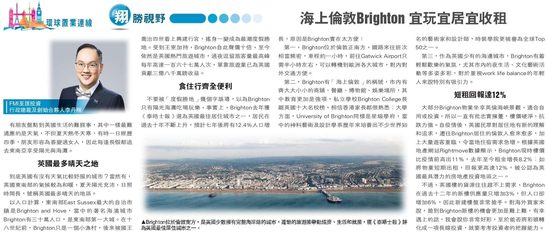 《明報》「翔勝視野」專欄 —海上倫敦Brighton 宜玩宜居宜收租