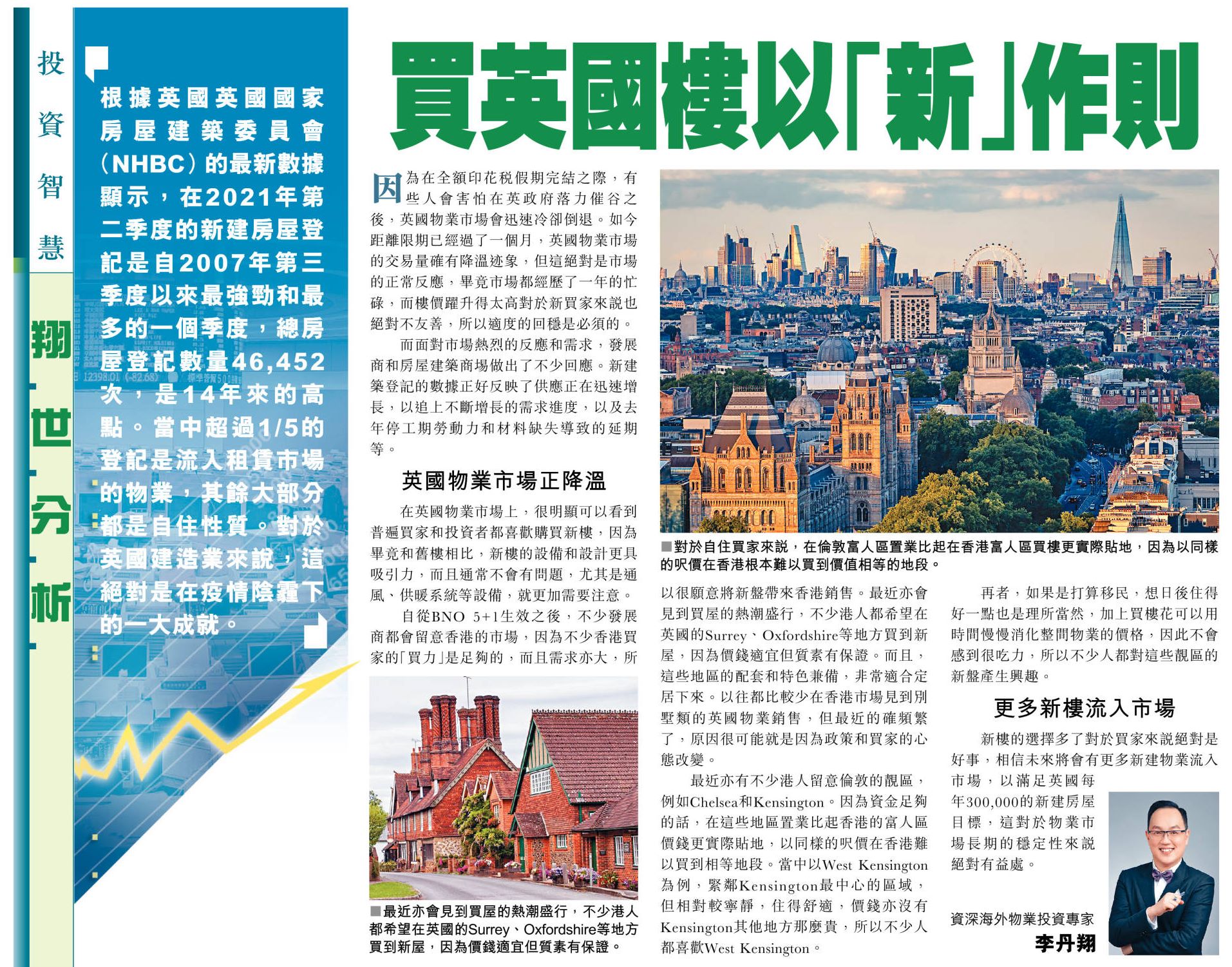 《星島日報投資王周刊》專欄「翔世分析」—買英國樓以「新」作則