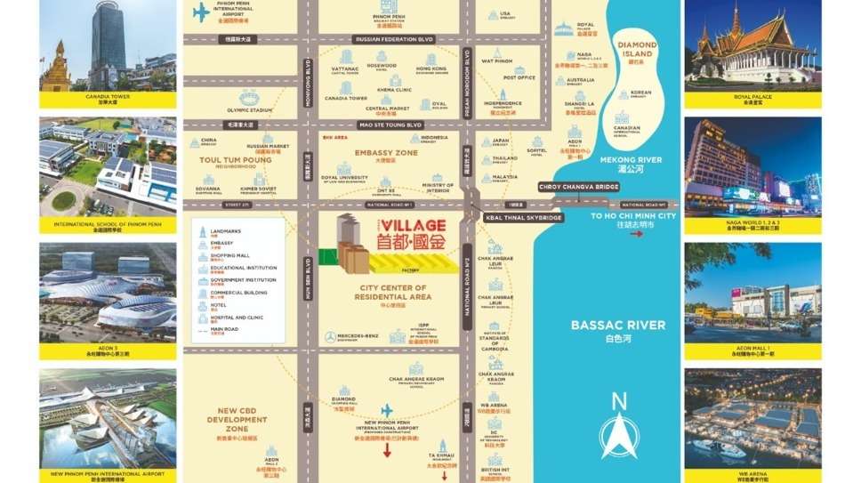 柬埔寨是近年成為東南亞增速最快的國家,過去10年平均增長率保持7%以上,亦近年來東盟地區國內生產總值(GDP)增長最快的國家之一,吸引海外投資者開始進入柬埔寨物業市場,特別是中國投資者,當地樓價近3年前升了1倍。由金鏗集團(香港)打造並提供物業管理的樓盤項目Urban Village,坐落東南亞最大型的共享創意空間,是一項佔地76萬平方米的大型綜合項目,特設藝術畫廊區、共享辦公室等。項目鄰近多項生活配套,如BKK1 SOHO區、AEON購物中心、金界賭場及多家高級餐廳等,讓住客享受15分鐘消閒生活圈。項目同時位於領事館區及名校網,毗鄰金邊國際學校 ISPP、皇家法律與經濟大學。