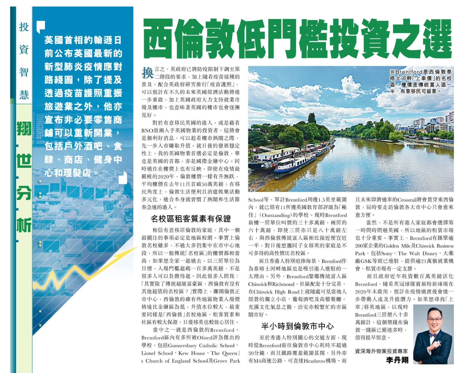 《星島日報投資王周刊》專欄「翔世分析」—西倫敦低門檻投資之選
