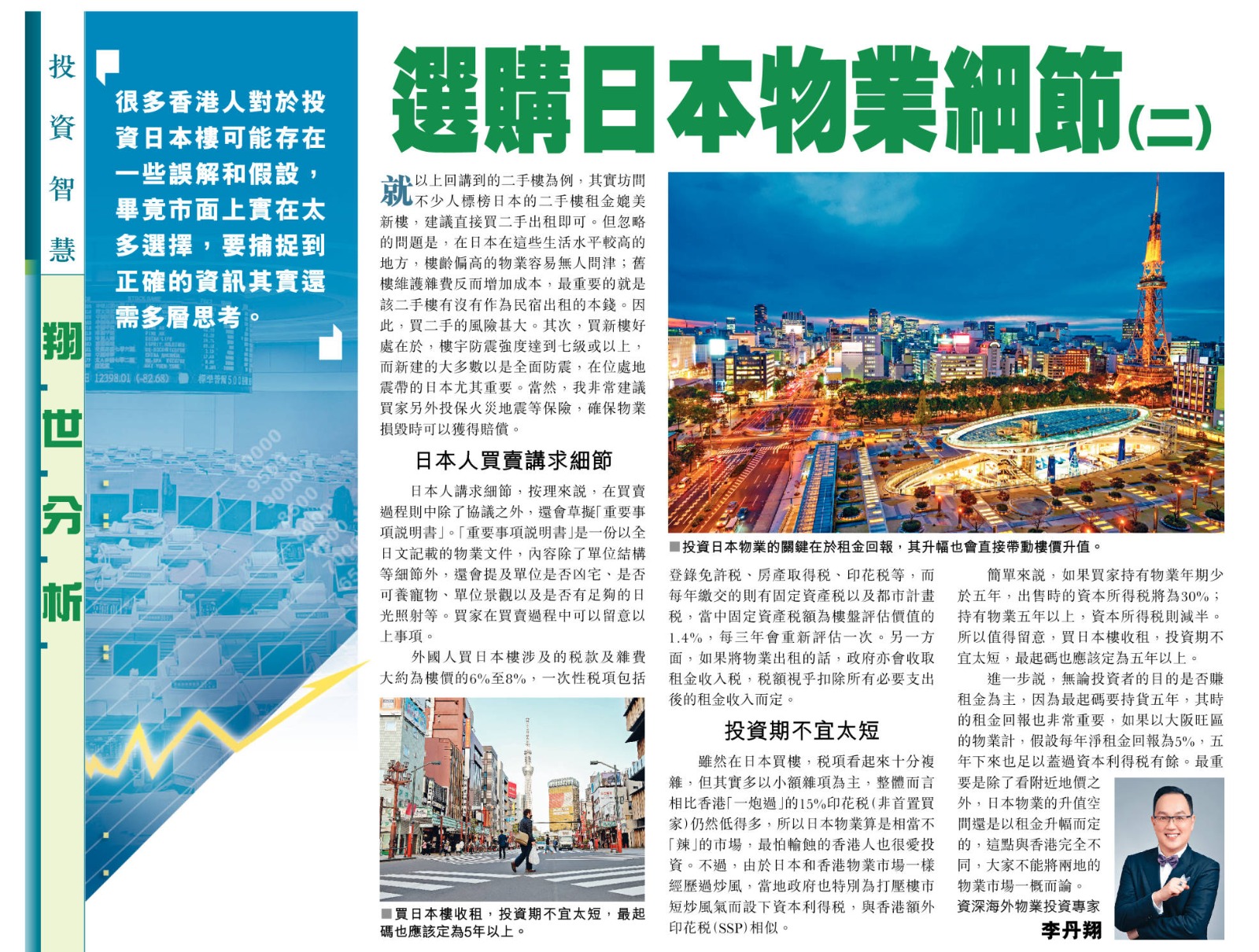 《星島日報投資王周刊》專欄「翔世分析」—選購日本物業細節(二)