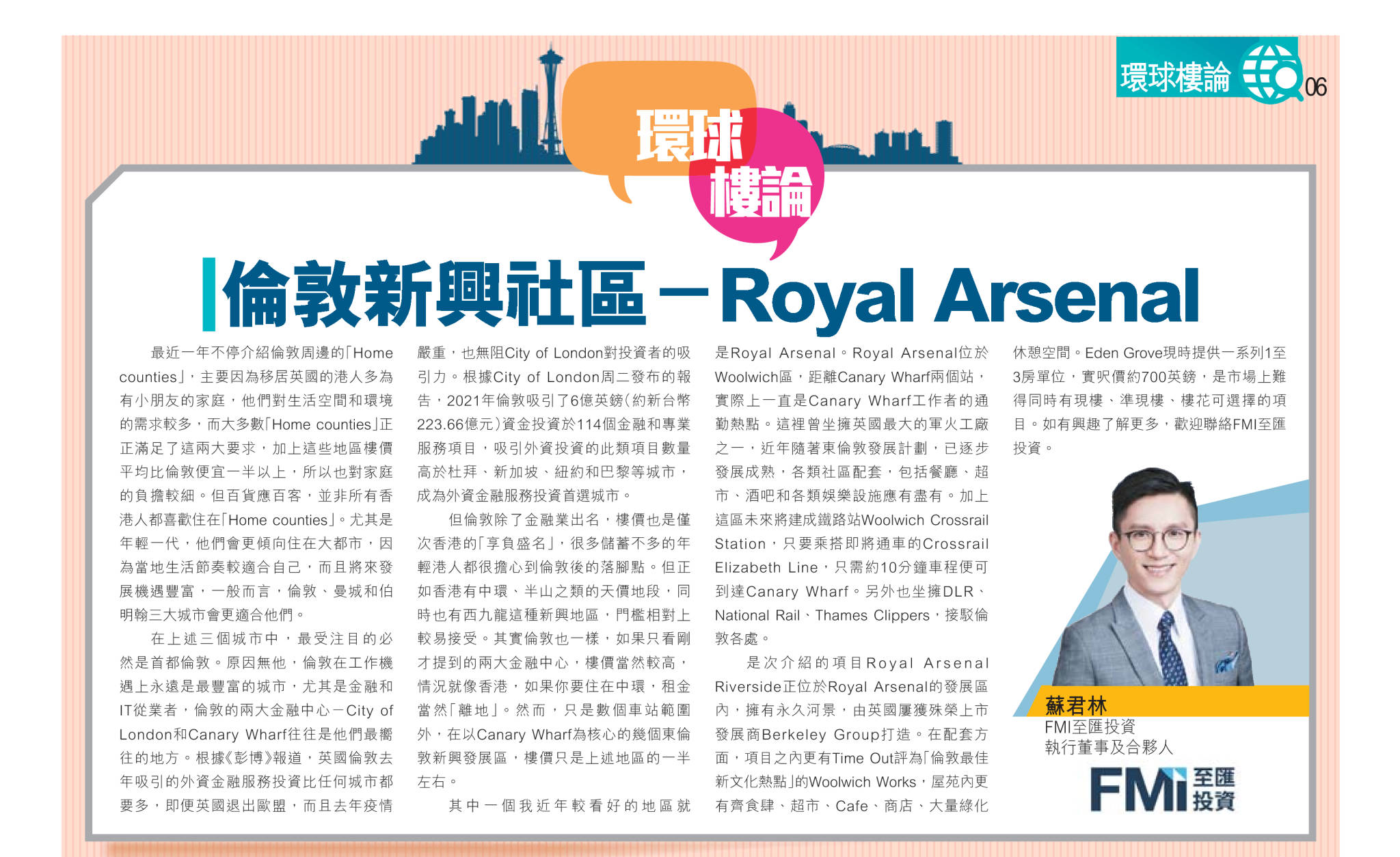 《星島睇樓王》「環球樓論」專欄—倫敦新興社區-Royal Arsenal