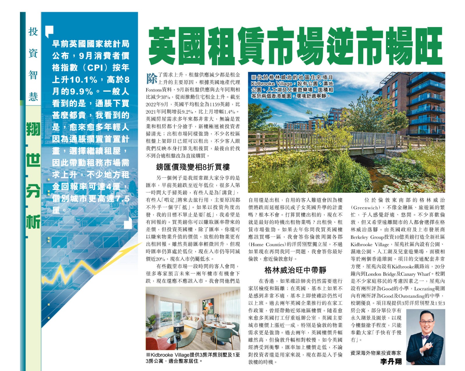 《星島日報投資王周刊》專欄「翔世分析」 — 英國租賃市場逆市急升