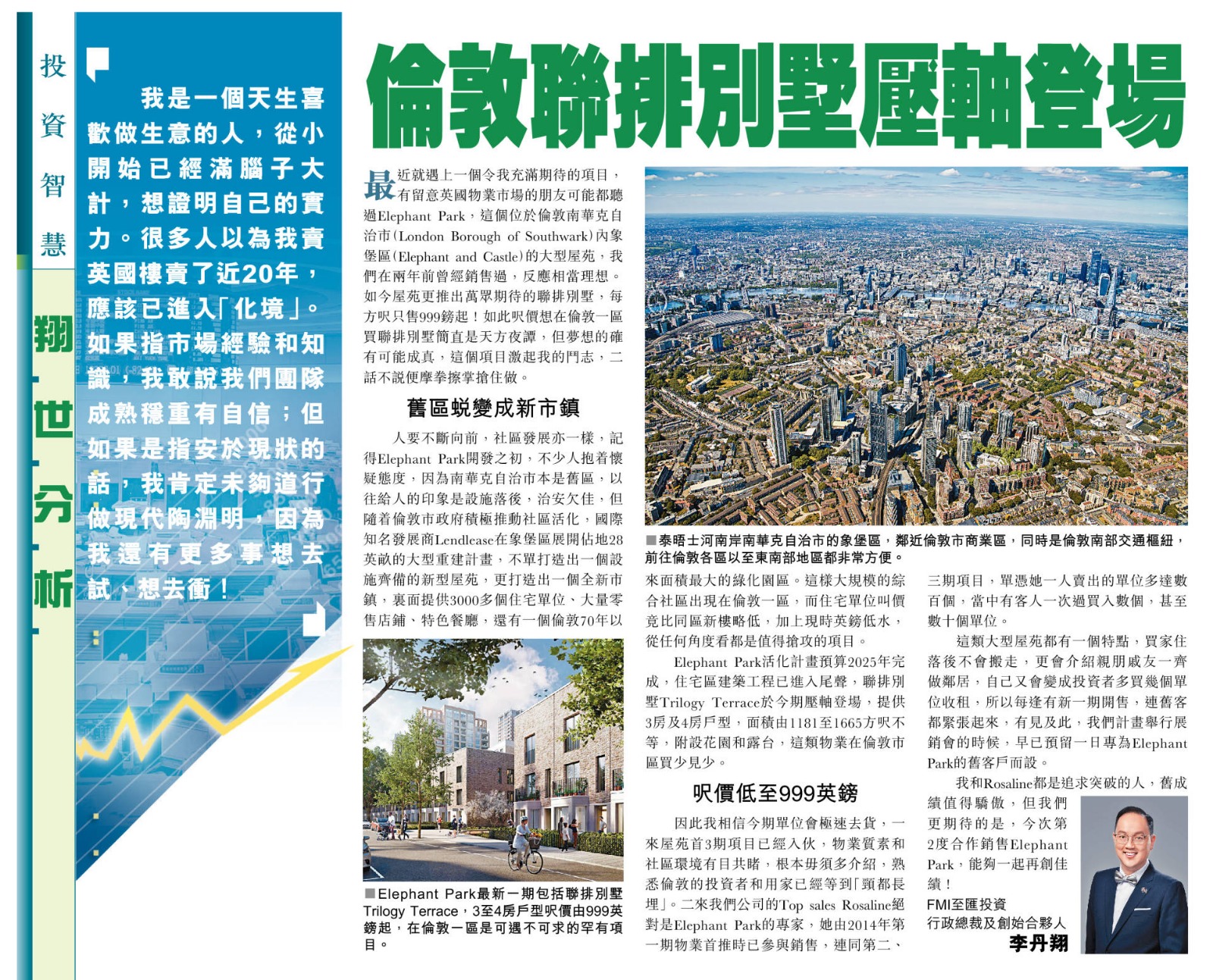 《星島日報投資王周刊》專欄「翔世分析」 —倫敦聯排別墅壓軸登場