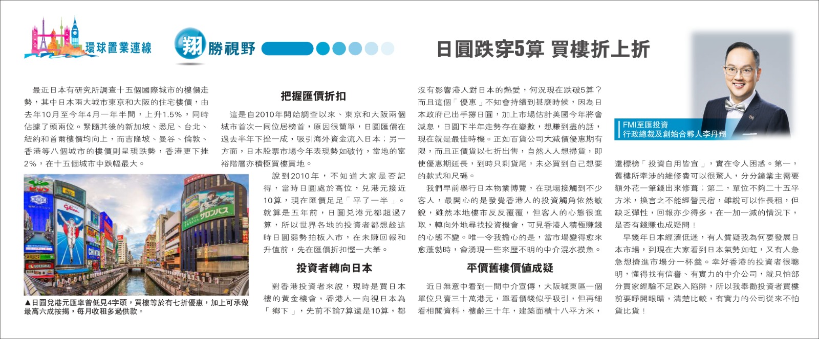 《明報》「翔勝視野」專欄 —日圓跌穿5算 買樓折上折