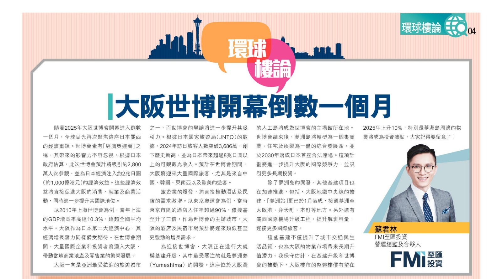 這些基建不僅提升了城市交通與生活品質,也為大阪的物業市場帶來長期升值潛力。我保守估計,在基建升級和世博會的推動下,大阪樓市的整體樓價有望在2025年上升 10%,特別是夢洲島周邊的物業將成為投資熱點,大家記得要留意了!