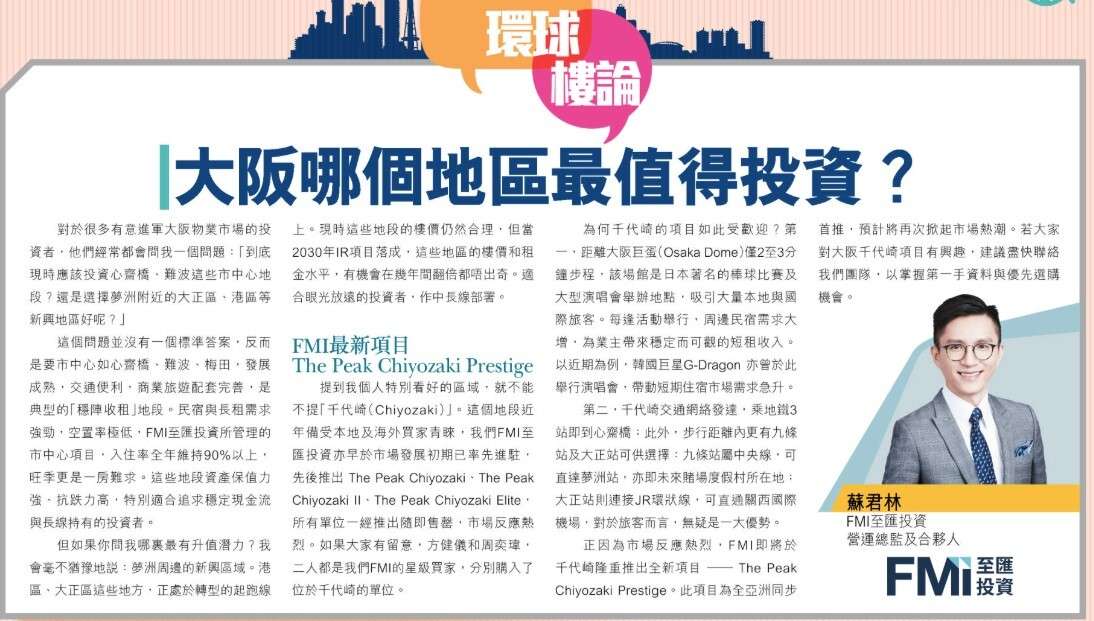 轉眼間,2025年只剩下短短兩個月。熟悉我的朋友可能早已察覺,今年我經常穿梭於香港、台灣與日本之間,因為這一年對我們 FMI JAPAN 而言,是意義非凡的一年。我們正式拓展至台灣市場,將備受矚目的大阪旗艦項目 The Peak Series 帶給台灣投資者,並在台北設立辦公室,為當地投資者提供更即時、貼心的專屬服務。