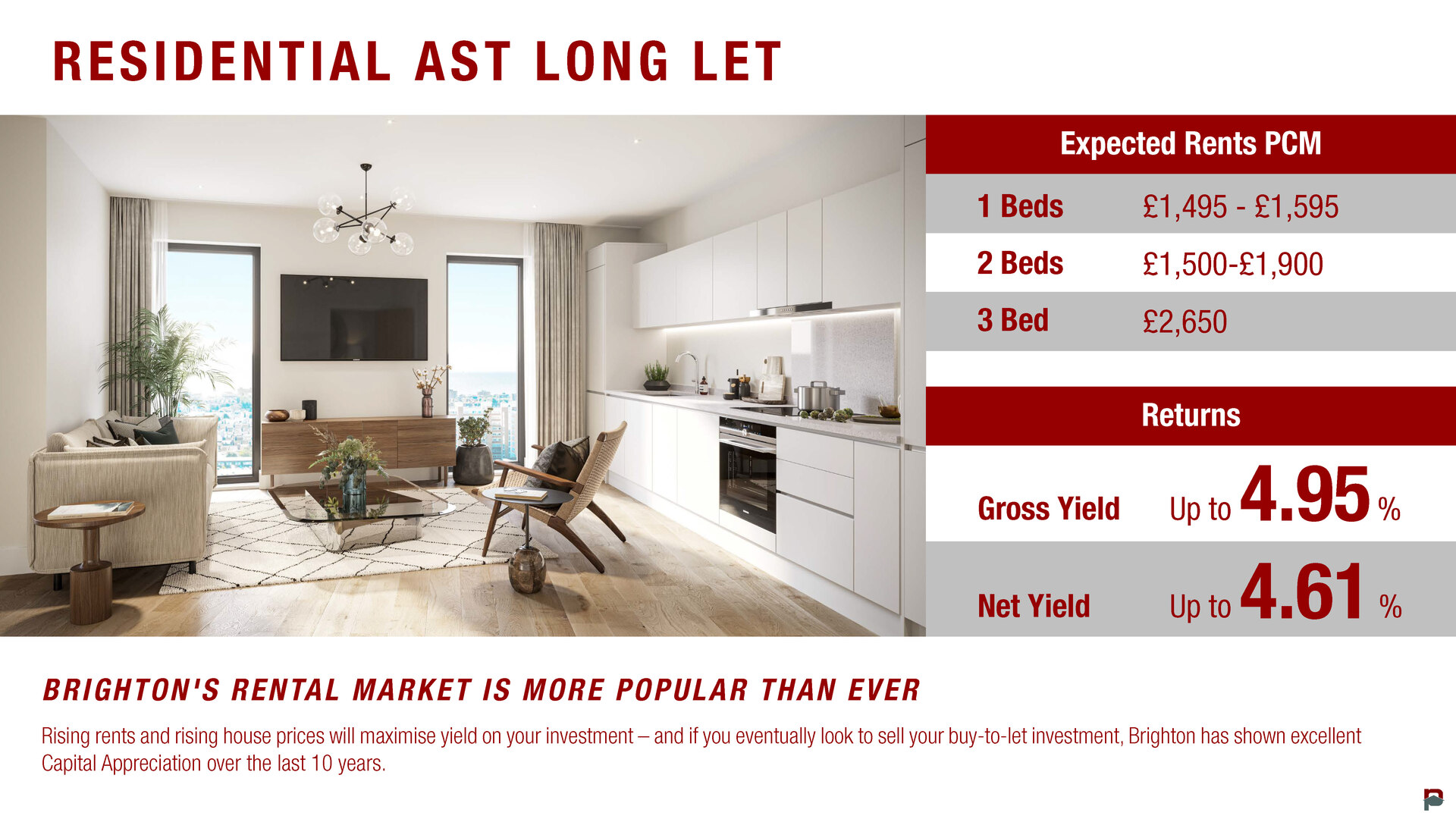 近年 Brighton 的物業價格和租金都有上升的趨勢,而且本身 Brighton 的樓盤供應量向來不多,因此新樓盤一向都非常搶手,而 這個樓盤正是 Brighton 近期市內唯一的新樓盤。 Goldstone Apartments 長短租均宜,地理位置鄰近火車站,短租的淨回報率高達 12%。近年 Brighton 經濟增長強勁,亦被譽為英國最適合進行商業活動的城市之一,去年至今的租金年增長更達到 8.2%,因此對於買家來說可以起到自用和投資雙重作用。