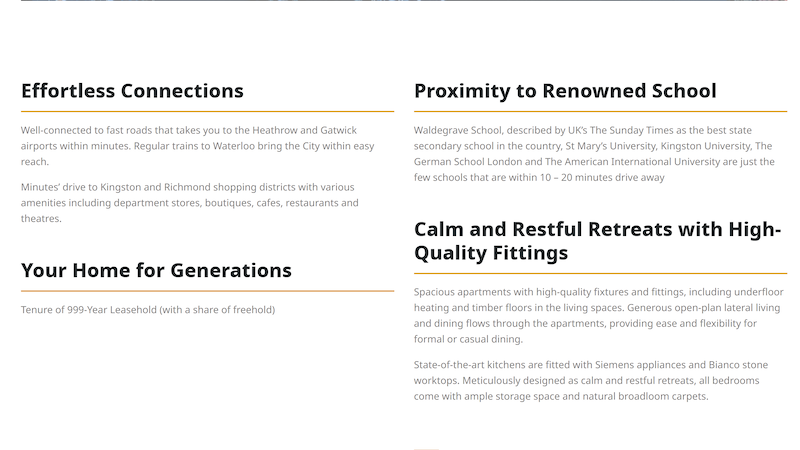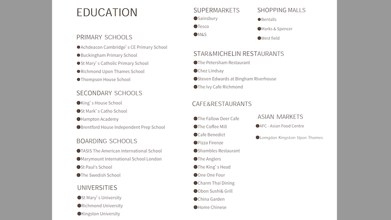 相對之下,第三位的泰晤士河畔列治文區是以用家為主的豪宅區,市內不乏富有歷史價值的皇室建築,包括有英國版凡爾賽宮之稱的漢普頓宮(Hampton Court Palace)、英王喬治三世的行宮基佑宮(Kew Palace)、都鐸王朝所建立的列治文宮(Richmond Palace)等,有種平實內斂的氣派,居住環境一流,是倫敦治安最好、快樂指數最高的地區之一。