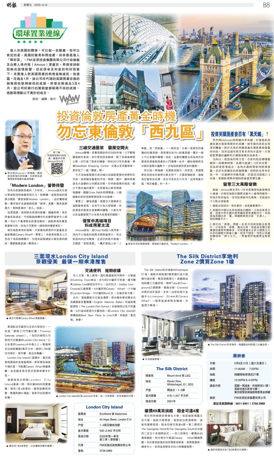 港人和英國的關係,可以說一言難盡。但可以 肯定的是,英國的教育和房地產,向來都是港人「那杯茶」,FMI至匯投資集團有限公司行政總裁 及合夥人李丹翔(Amous)更直言,即使受到新 冠肺炎疫情影響,但在匯率及利息的利好因素 下,其實港人對英國房產的熱情並無減低。