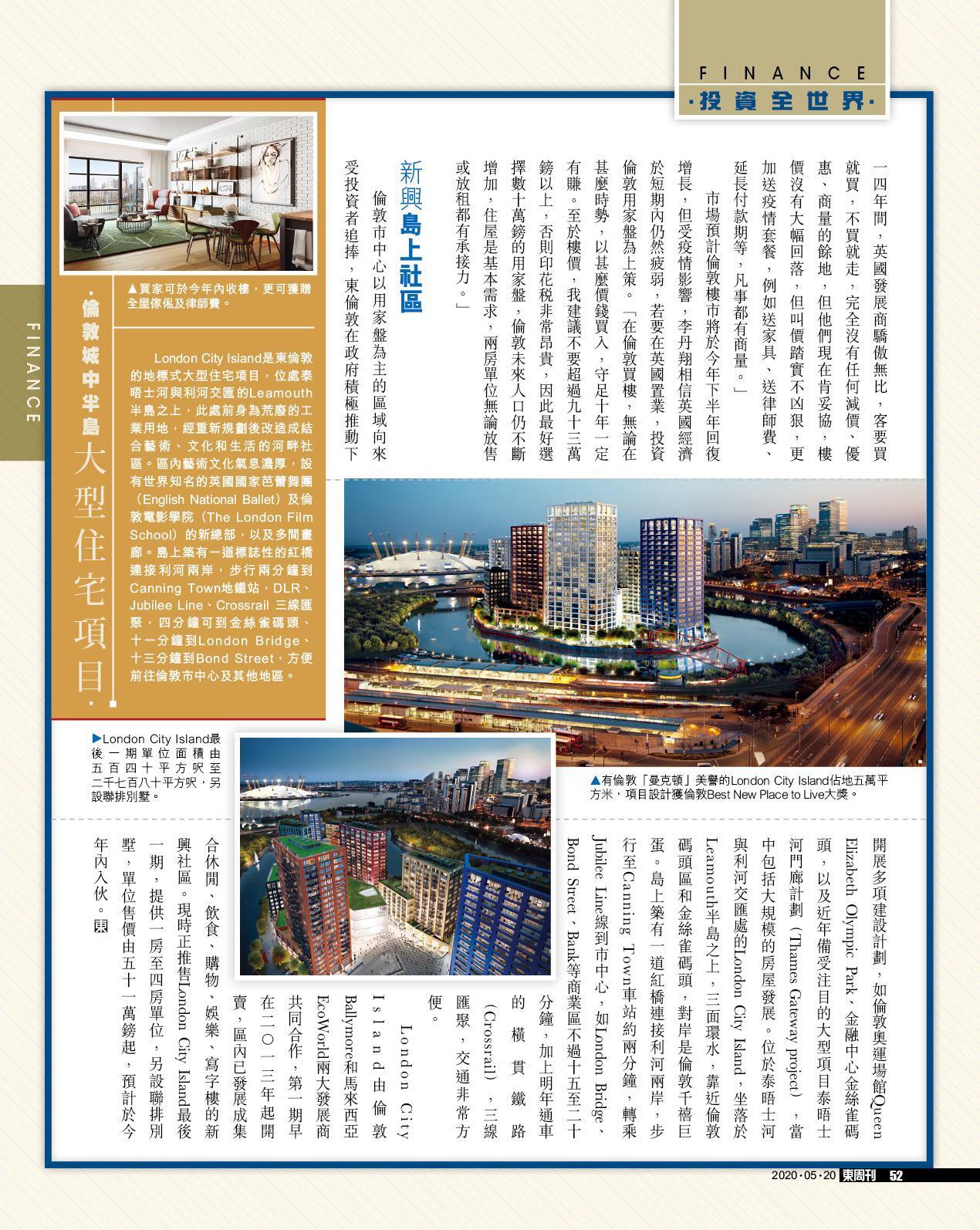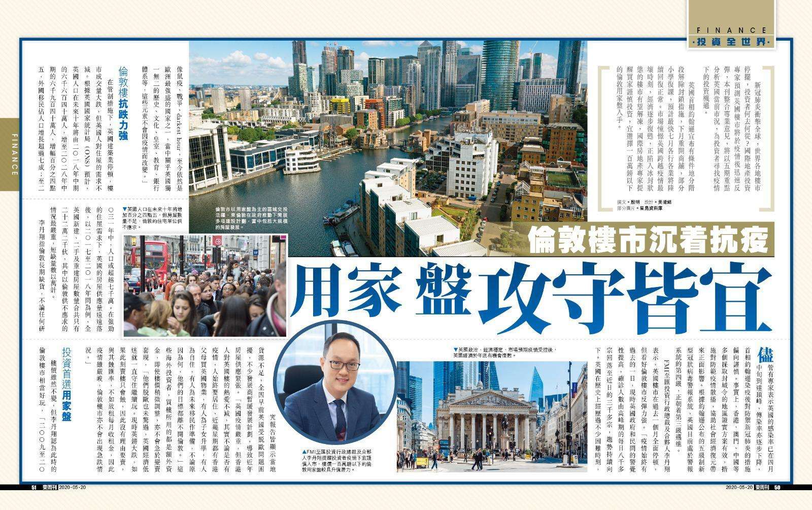 FMI至匯投資行政總裁及合夥人李丹翔先生(Amous)接受《東周刊》訪問時表示,在管制措施下,英國建築業停頓,樓市成交量大跌,但英國人對住屋的需求不減,因為英國人口在未來十年將不斷增加,房屋供應量仍遠遠落後,「因此即使疫情嚴峻,倫敦樓市亦不會出現急跌情況。」他又認為若要在英國置業,投資倫敦用家盤為上策,「我建議不要購買超過93萬鎊以上,否則印花稅非常昂貴,因此最好選擇數十萬鎊的用家盤,兩房單位無論放售或放租都有承接力。」