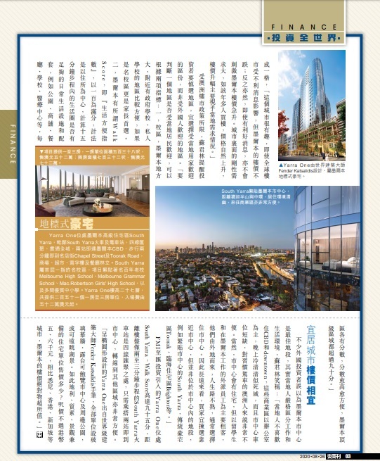 《東周刊》澳洲上月宣布延長港人臨時工作簽證及學生簽證至五年,期滿後可申請永久居留權。激發起港人新一輪置業慾望。 FMI至匯投資執行董事及合夥人蘇君林(Nicky)接受今期《東周刊》訪問時表示,墨爾本屬溫帶氣候,四季分明,生活節奏較慢,生活方便指數高,而且有豐富天然資源。蘇君林亦形容墨爾本的樓市自成一格,「這個城市很有趣,即使全球樓市受不利消息影響,但墨爾本的樓價不跌;反之亦然,即使有利好消息,亦不會刺激墨爾本樓價急升。城市裏面的剛性需求大,如該年多人買樓,價格自然上升,樓價升幅主要視乎當地需求情況。」