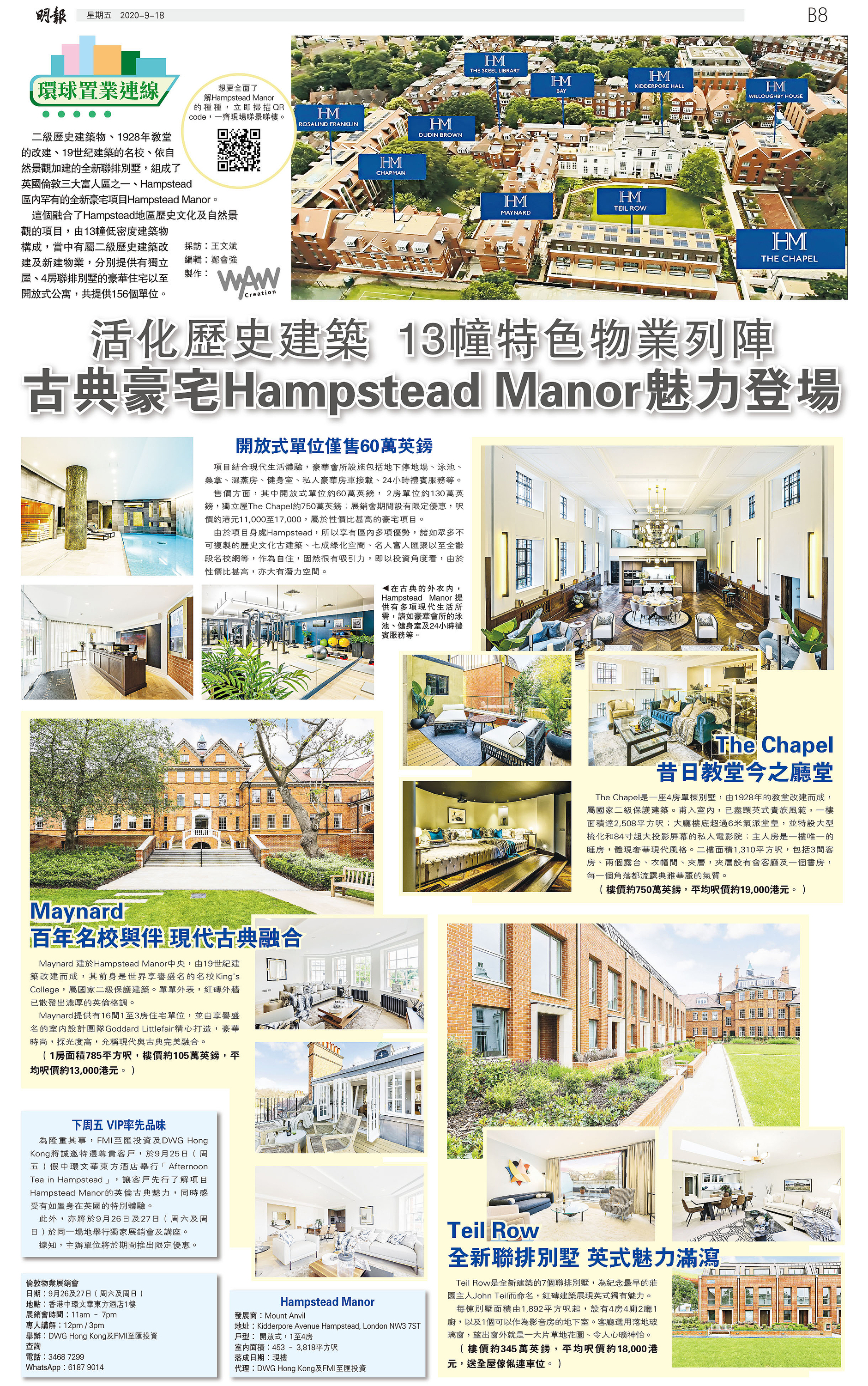 活化歷史建築 13幢特色物業列陣 古典豪宅Hampstead Manor魅力登場