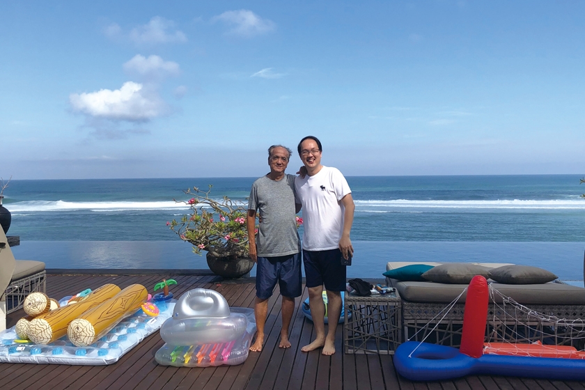 Amous與已故父親在2019年於峇里島渡假,放鬆心情。