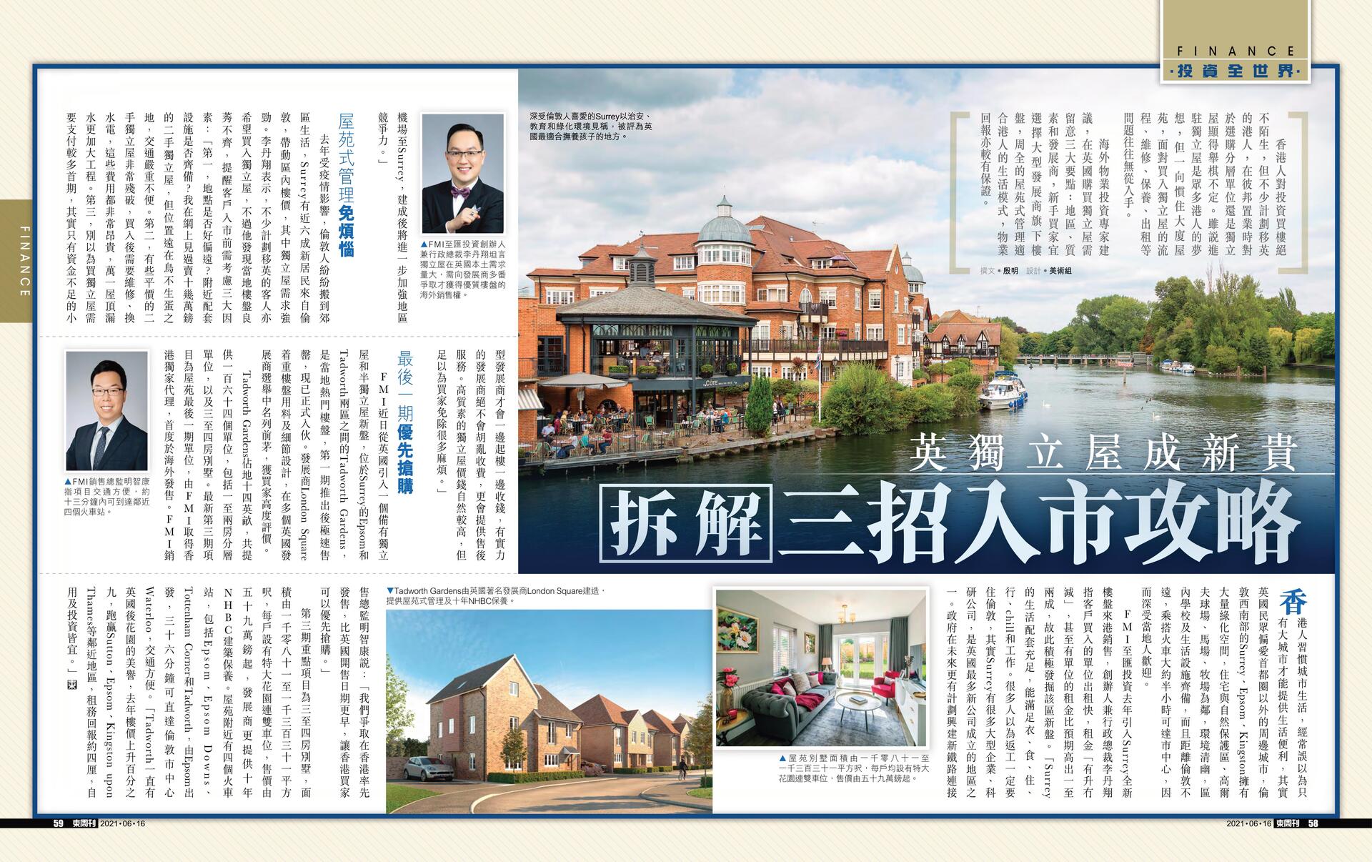 英國樓市過去一年非常火熱,成交量在2021年3月達到173,410宗,比去年同期急增一倍,而整體樓價亦由去年4月至今年3月上升了10.2%,在疫情中取得理想成績。其中,獨立屋及半獨立屋的升幅更跑贏大市,分別升11.7%及10.6%,足顯潛力。由於英國獨立屋需求殷切,內銷足夠「消化」,過去罕有在海外發售。