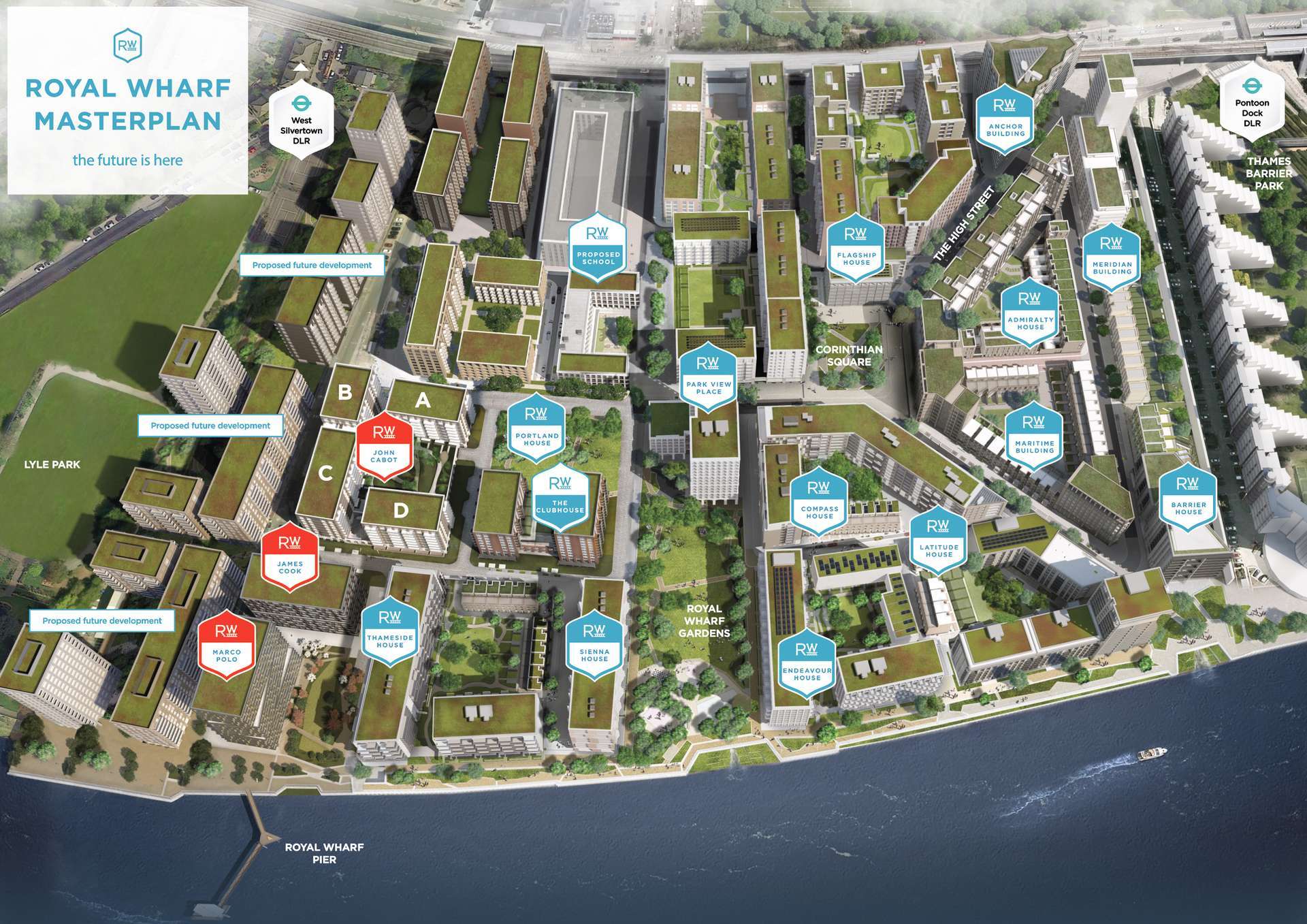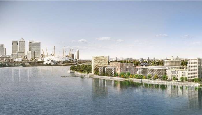 - 倫敦核心地段:倫敦Zone 3泰晤士河旁大型住宅項目,500米長的海濱長廊、2.4英畝園林公園